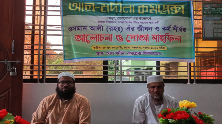 ভাষাসৈনিক শাহ সুফি ওসমান আলীর ৯ম মৃত্যুবার্ষিকী উপলক্ষ্যে নেত্রকোনার নাগড়ায় অবস্থিত আল মদীনা মহিলা কমপ্লেক্স-এর উদ্যোগে আলোচনা সভা ও দোয়া মাহফিল অনুষ্ঠিত হয়েছে। ২০ জুন মঙ্গলবার বেলা ১১টায় এই মিলাদ মাহফিল, আলোচনা ও দোয়ার আয়োজন করা হয়।