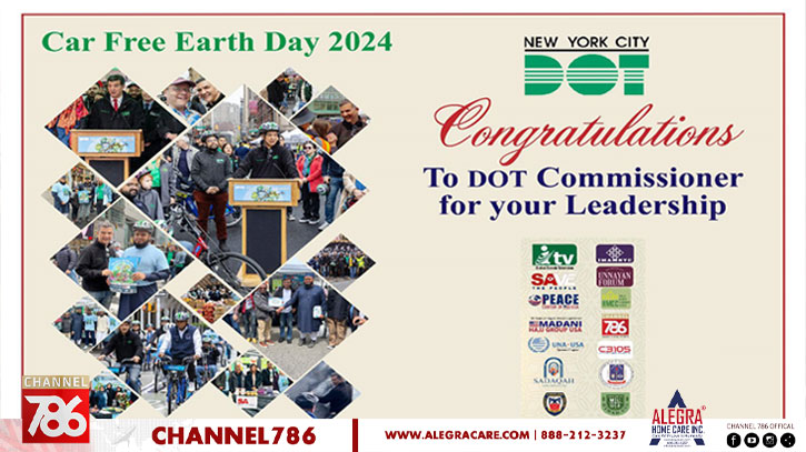 নিউইয়র্ক সিটি ডিপার্টমেন্ট অব ট্রান্সপোর্টেশন-এর উদ্যোগে প্রতি বছরের মতো এবারও গাড়িমুক্ত আর্থ ডে উদযাপন করা হয়েছে। গত ২০ এপ্রিলের সফল সেই উদযাপন অনুষ্ঠানের সঙ্গে ডিপার্টমেন্ট অব ট্রান্সপোর্টেশন ছাড়াও অনেক বেসরকারি সংস্থা, সংগঠন এবং গণমাধ্যম সক্রিয়ভাবে সহযোগিতা করেছে।
